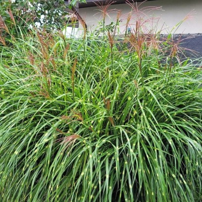 kwiatostany: miedziane lub purpurowo-czerwone, później srebrzyste