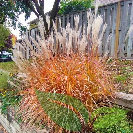 Dzięki intensywnemu wybarwieniu jest to jedna z najbardziej dekoracyjnych odmian miskanta jesienią.
