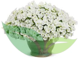 Wyjątkowo dekoracyjna odmiana petunii o drobniejszych, śnieżnobiałych kwiatach i zwartym, lekko przewieszającym się pokroju. W porównaniu do klasycznych supertunii, odmiany Mini Vista są bardziej kompaktowe, ale równie obficie kwitną.