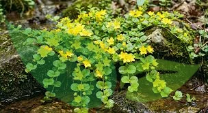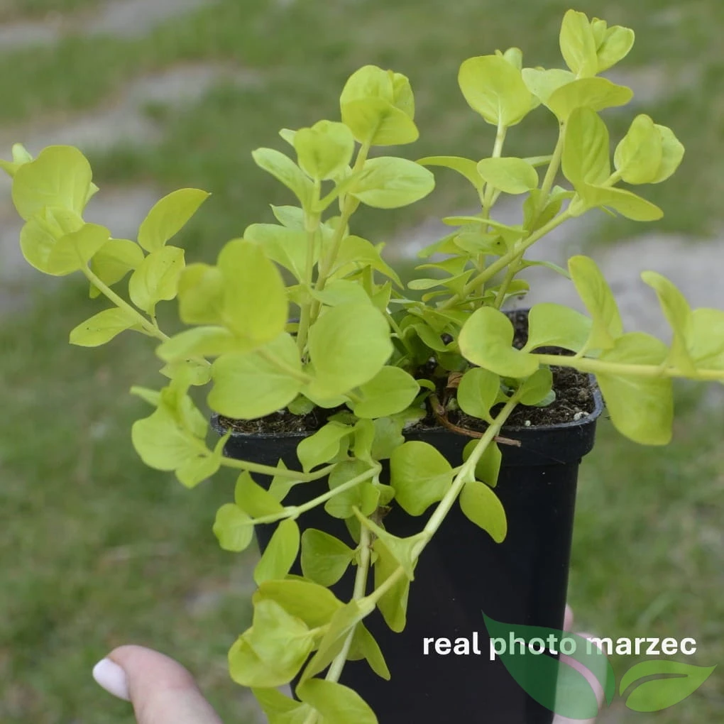 - liście: okrągłe, zielone lub złociste (‘Aurea’)